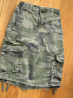 Bee will. not. wear. these camo shorts. will. not. She says they look like boy pants. I thought I'd try this method on these guys too. Maybe they won't look boyish in skirt form.