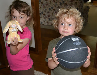 As luck would have it, my grandma's neighborhood was having a yard sale while we were there. What luck. Bee bought a praying bunny for 25 cents. Lou bought a perfect sized basketball with his 50 cents.